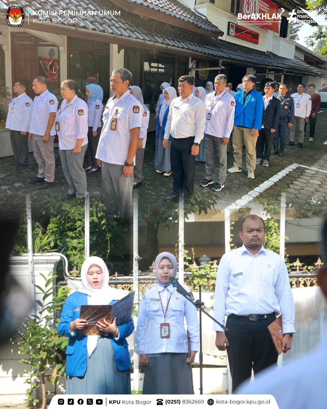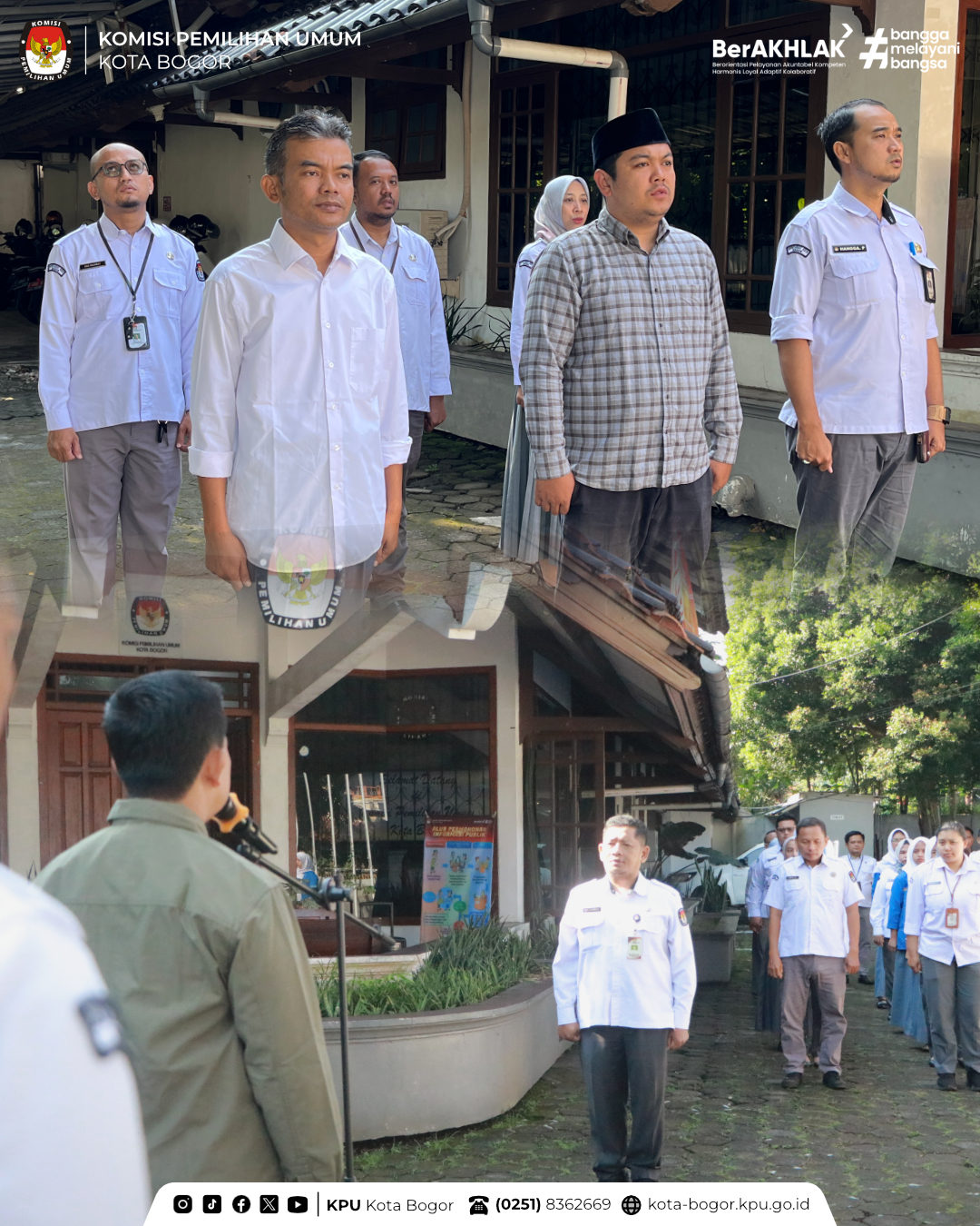 Senin pagi, jajaran KPU Kota Bogor melaksanakan apel rutin di halaman kantor. Ketua Divisi Hukum dan Pengawasan, Dede Juhendi, S.E., bertindak sebagai pembina apel.