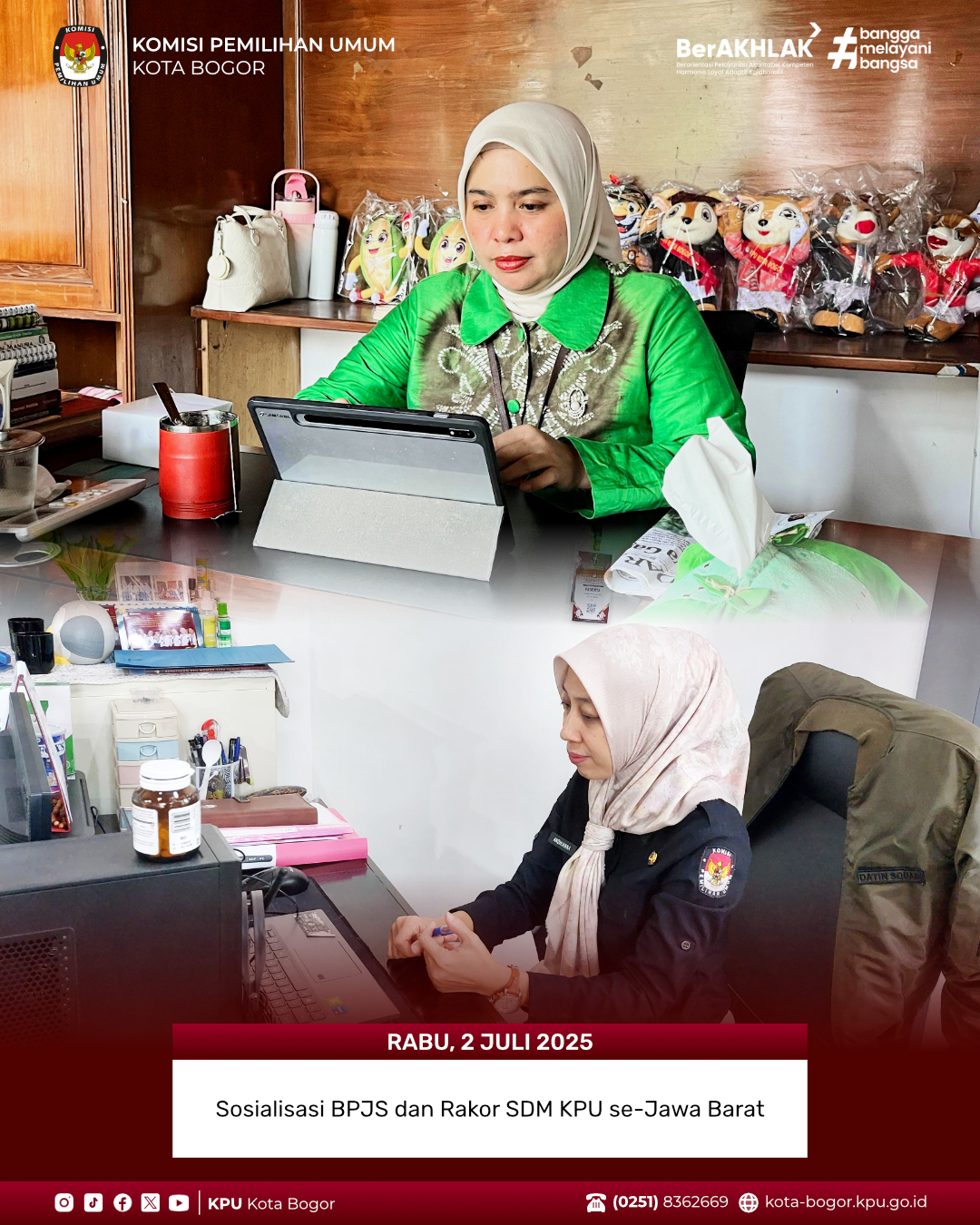KPU Kota Bogor mengikuti kegiatan Sosialisasi BPJS Ketenagakerjaan serta Rapat Koordinasi Sumber Daya Manusia (SDM) bersama KPU Provinsi Jawa Barat dan KPU Kabupaten/Kota se-Jawa Barat via Daring.