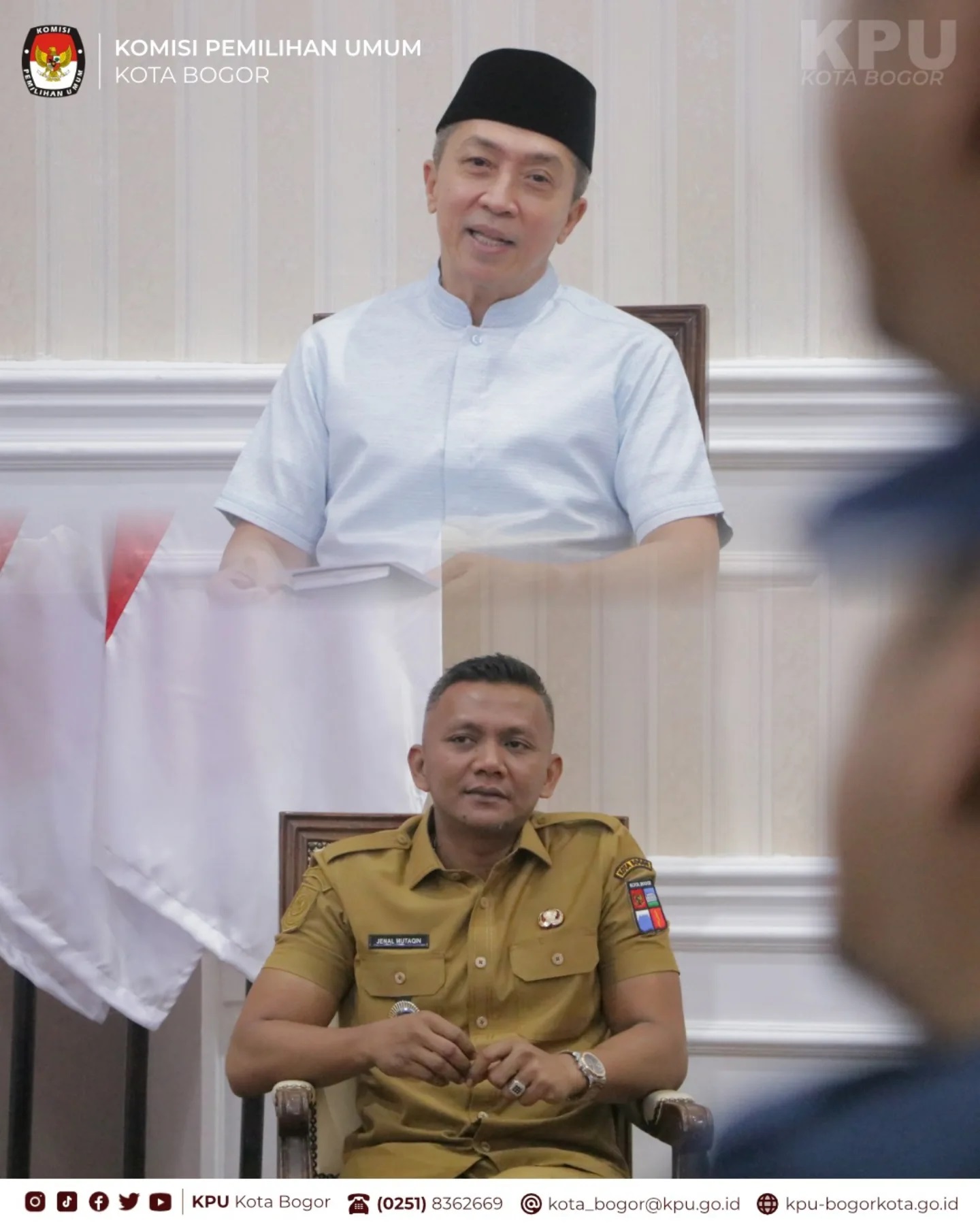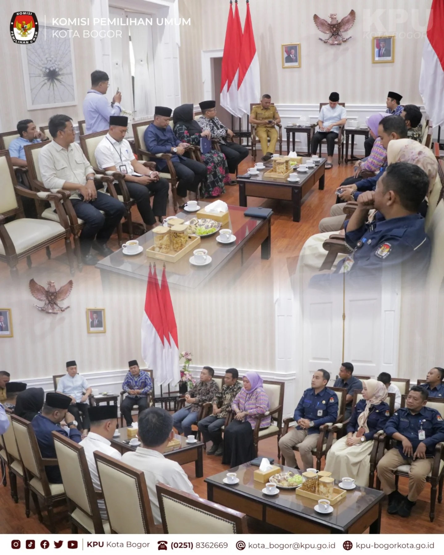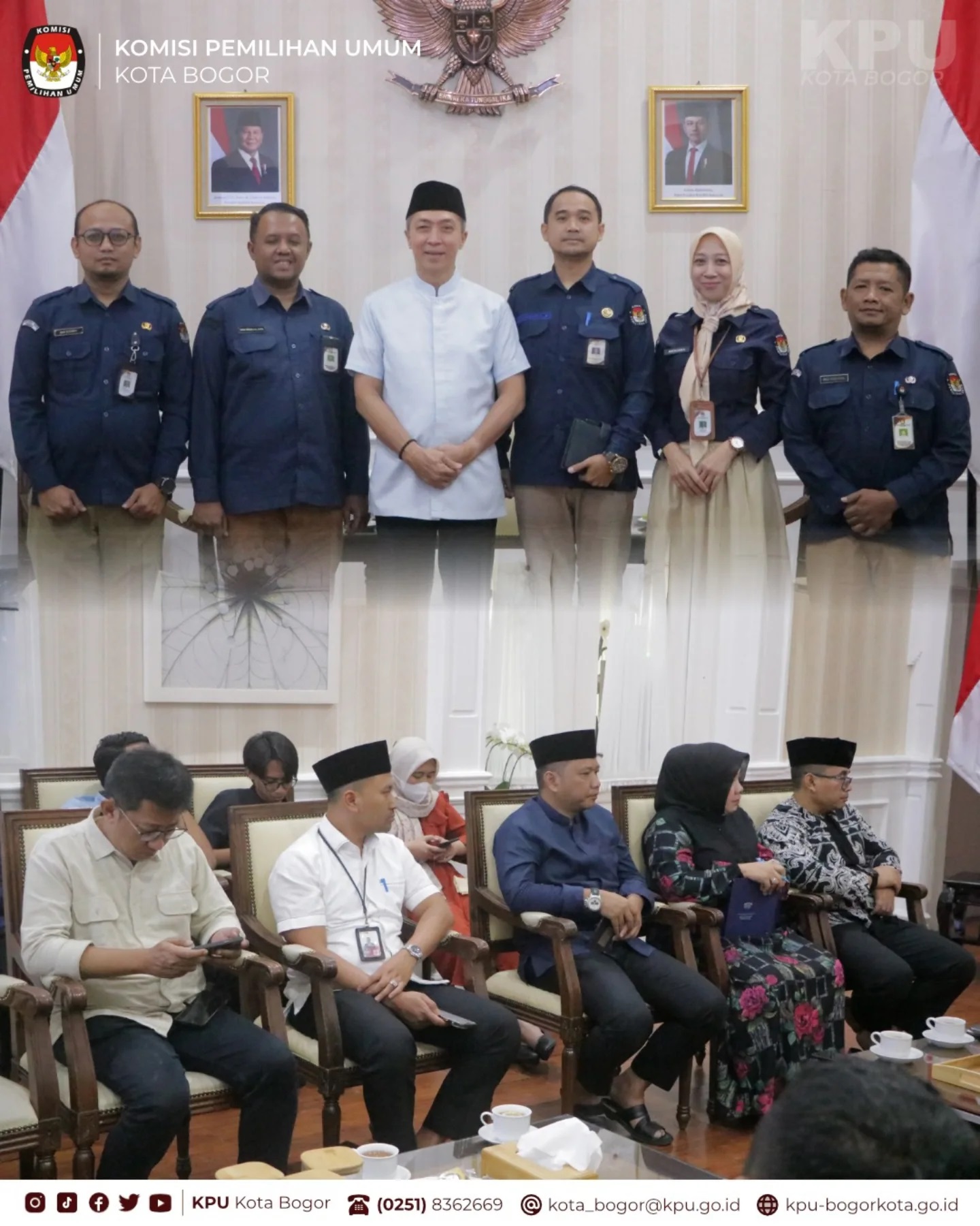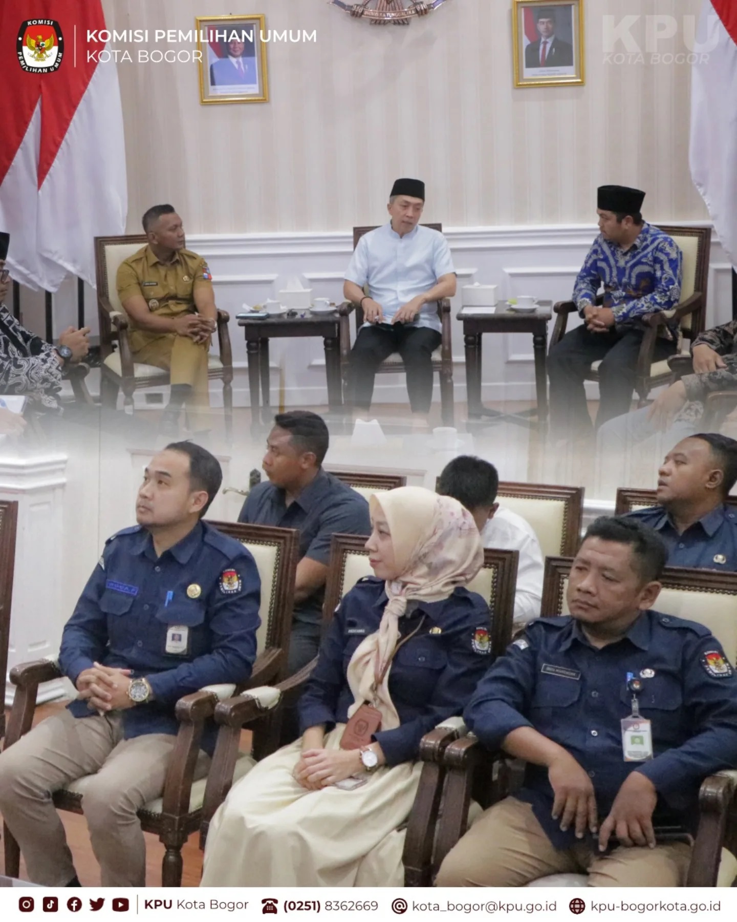 Selasa, 22/07 Komisi Pemilihan Umum (KPU) Kota Bogor melakukan audiensi dengan Wali Kota Bogor sebagai bentuk silaturahmi sekaligus menyampaikan apresiasi dan ucapan terima kasih atas dukungan Pemerintah Kota Bogor dalam pelaksanaan tahapan Pemilu 2024 dan persiapan Pilkada 2024.