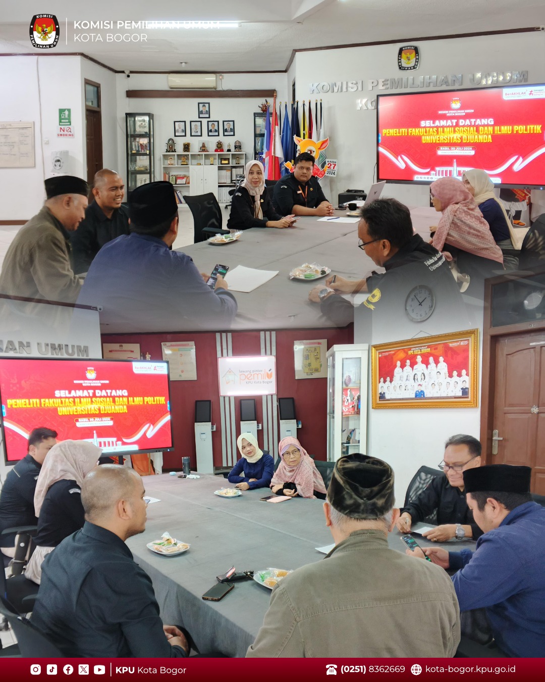 KPU Kota Bogor menerima kunjungan dari Fakultas Ilmu Sosial dan Ilmu Politik Universitas Djuanda dalam rangka penelitian desain model Pemilu Serentak Elektronik (E-Election).