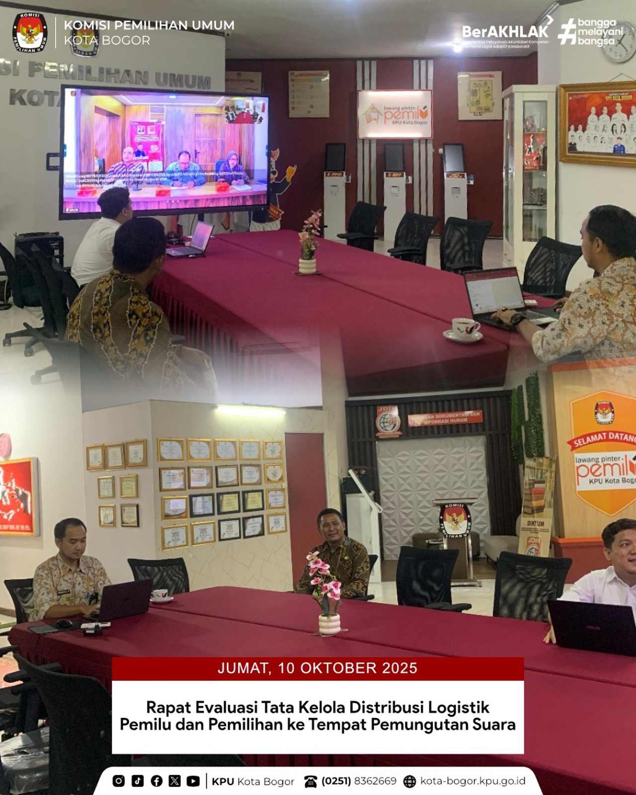 KPU Kota Bogor mengikuti Rapat Evaluasi Tata Kelola Distribusi Logistik Pemilu dan Pemilihan ke Tempat Pemungutan Suara (TPS) yang diselenggarakan oleh KPU Republik Indonesia bersama KPU Kabupaten/Kota se-Indonesia.