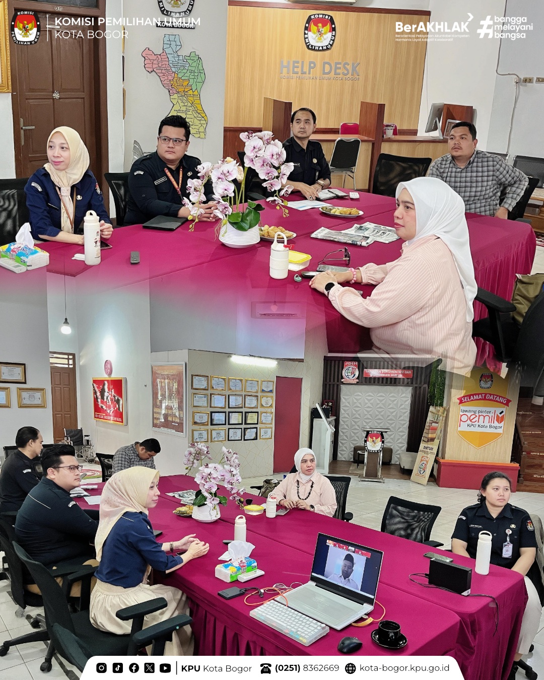 Kegiatan ini diikuti oleh Ketua KPU Kota Bogor Muhammad Habibie Zaenal Arifin, S.Pd.I., S.E., Ketua Divisi Parhumas dan SDM Darma Djufri, M.I.Kom., Sekretaris KPU Kota Bogor Hangga Pramaditya, S.H., M.H., Kepala Sub Bagian Parhumas dan SDM Andhianna, S.IP., serta seluruh staf Divisi Parhumas dan SDM KPU Kota Bogor.