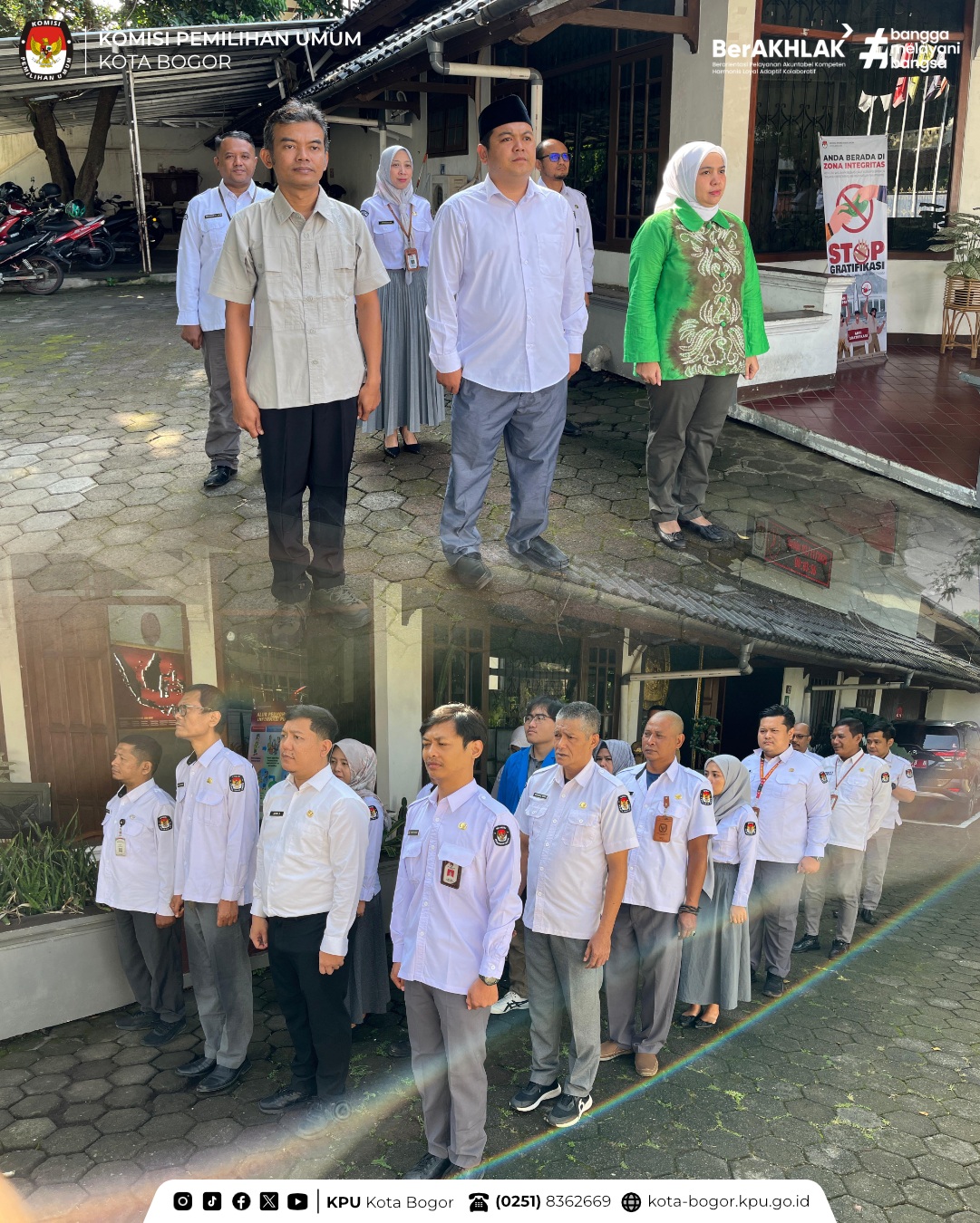 Kegiatan apel berlangsung tertib dan penuh semangat, diikuti oleh seluruh jajaran komisioner, sekretariat, dan staf KPU Kota Bogor. Apel ditutup dengan doa bersama, sebagai bentuk ikhtiar agar seluruh tugas dan tanggung jawab kelembagaan dapat berjalan lancar dan membawa manfaat bagi masyarakat.