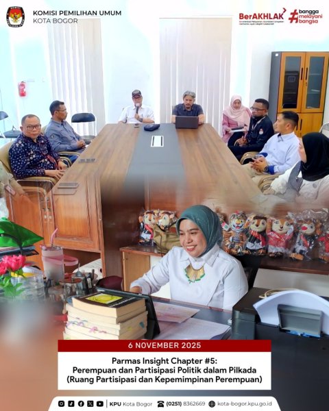 KOTA BOGOR – Komisi Pemilihan Umum (KPU) Kota Bogor menjadi salah satu narasumber pada kegiatan Parmas Insight Chapter #5 dengan tema “Perempuan dan Partisipasi Politik dalam Pilkada: Ruang Partisipasi dan Kepemimpinan Perempuan”.