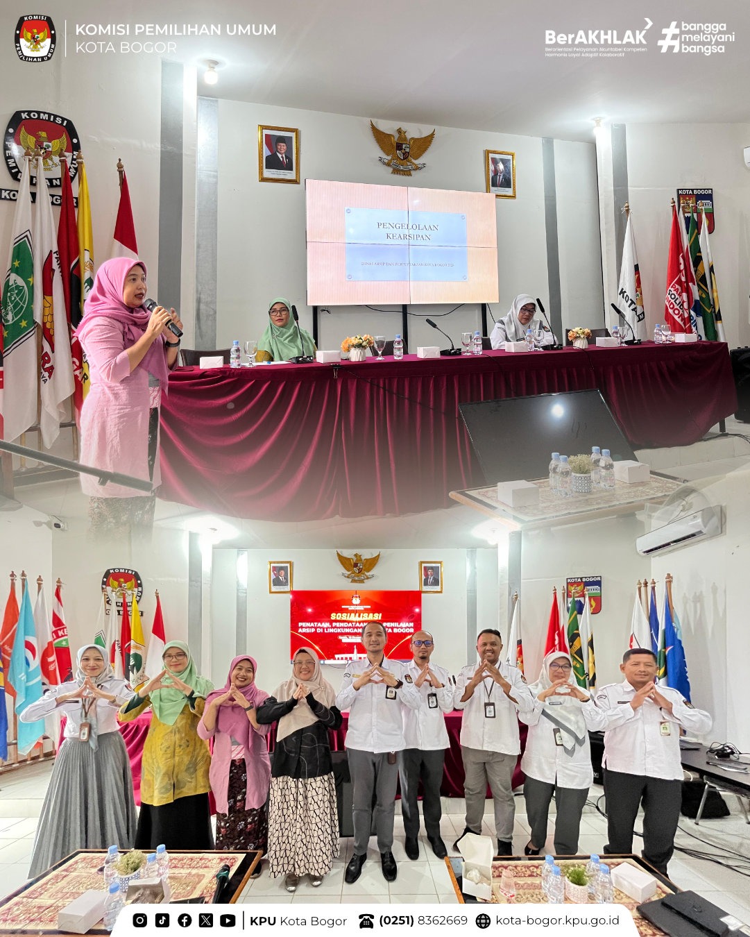 Kegiatan dihadiri Sekretaris KPU Kota Bogor Hangga Pramaditya, S.H.,M.H dan diikuti oleh jajaran Sekretraiat KPU Kota Bogor. Narasumber pada sosialisasi ini adalah Arsiparis Ahli Muda dari Kantor Dinas Kearsipan dan Perpustakaan Kota Bogor, Fira Malfina S.Sos beserta Zulianti Syahruriza S.Pd., M.A dan dipandu oleh Siti Chadijah,S.Sos selaku Fungsional Ahli Muda Arsiparis KPU Kota Bogor.