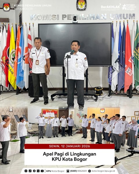 KOTA BOGOR – KPU Kota Bogor melaksanakan Apel Pagi di lingkungan Sekretariat KPU Kota Bogor sebagai upaya menjaga kedisiplinan dan memperkuat semangat kerja. Senin, 12/1/2026.