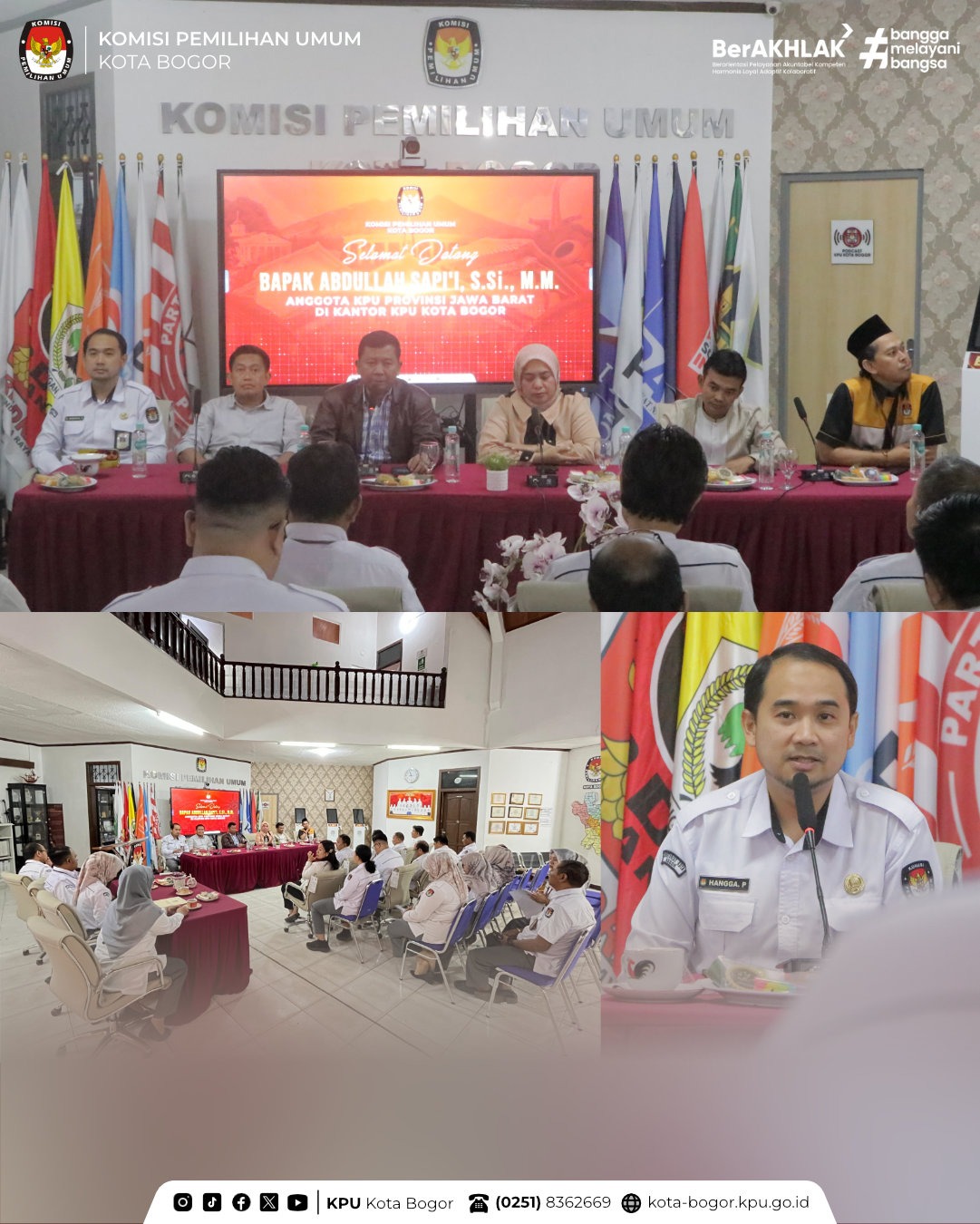 Kota Bogor – Komisi Pemilihan Umum (KPU) Kota Bogor menerima kunjungan kerja Ketua Divisi Sumber Daya Manusia dan Litbang KPU Provinsi Jawa Barat, Abdullah Sapi’i, S.Si., M.M., pada Senin (19/1). Kunjungan tersebut diterima secara langsung oleh seluruh Anggota KPU Kota Bogor bersama jajaran Sekretariat KPU Kota Bogor.