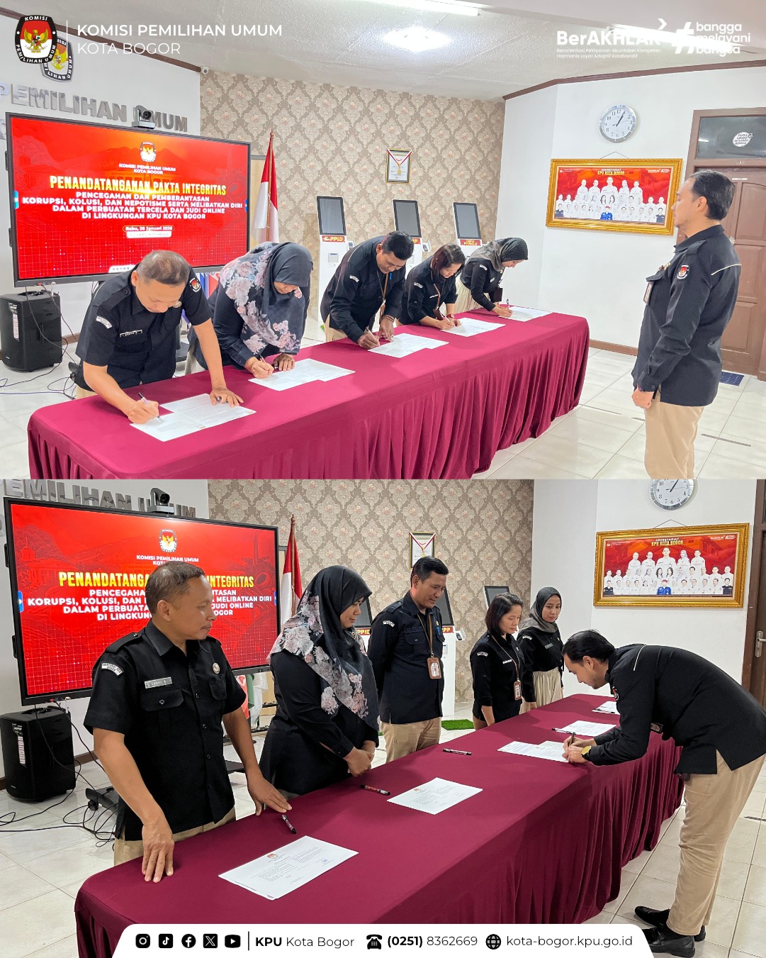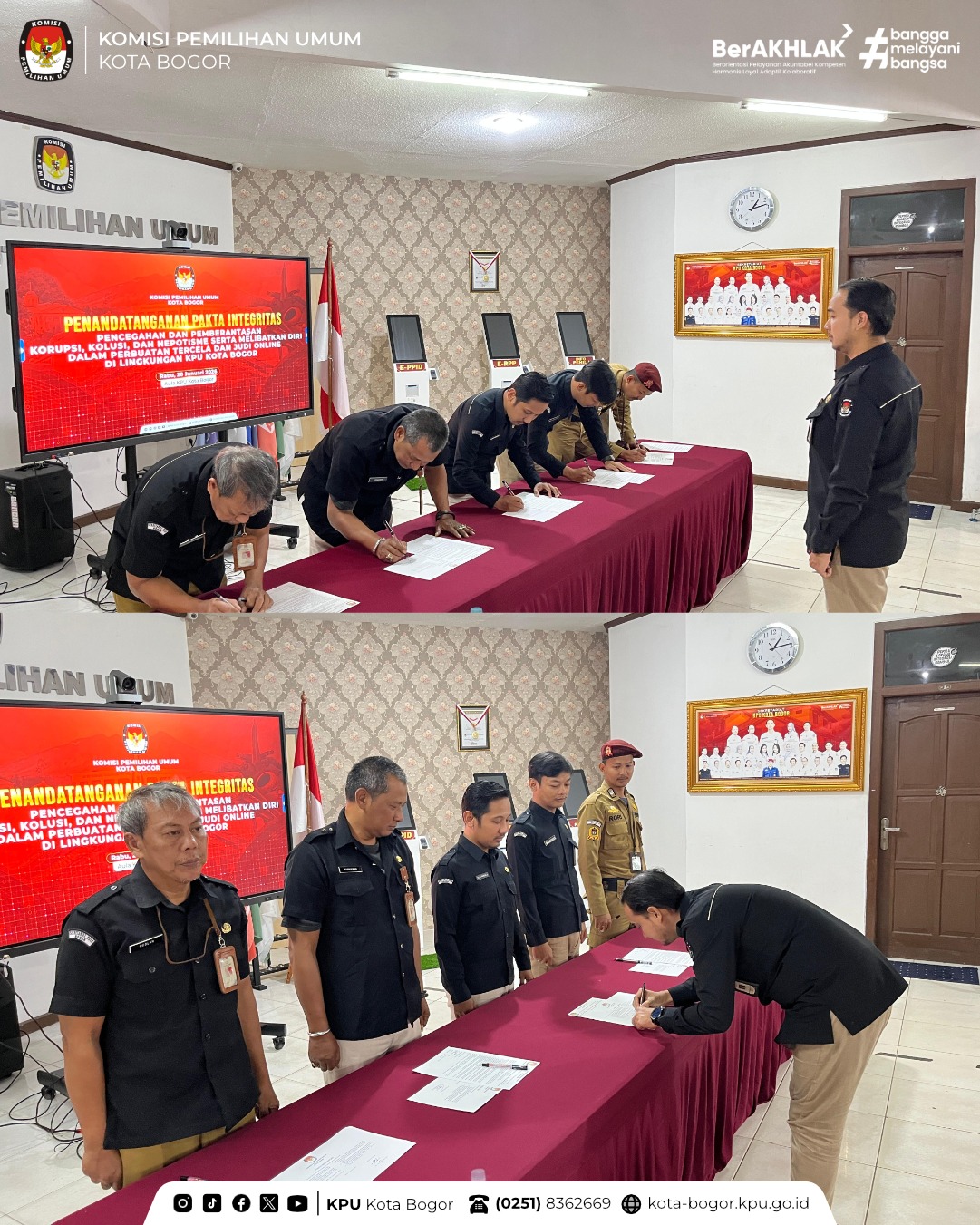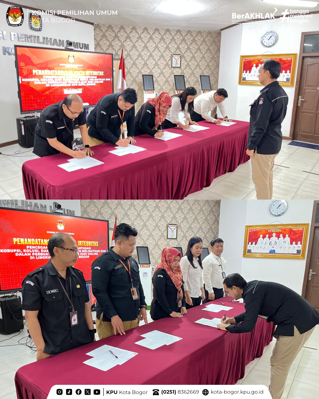 Tentunya Pakta Integritas ini bukan sekadar formalitas, melainkan wujud nyata kesungguhan seluruh jajaran KPU Kota Bogor dalam mendukung terciptanya lingkungan kerja yang bersih, berintegritas, dan bebas dari praktik KKN serta pengaruh negatif judi online. Hal ini juga sejalan dengan upaya penguatan nilai-nilai integritas dan akuntabilitas yang terus ditekankan oleh KPU Provinsi Jawa Barat.