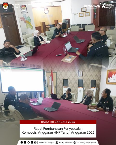 Kota Bogor — Komisi Pemilihan Umum (KPU) Kota Bogor menggelar Rapat Pembahasan Penyesuaian Komposisi Anggaran Hibah Non Pemilihan Tahun Anggaran 2026 pada Selasa, 28/01. Kegiatan ini dilaksanakan sebagai bagian dari upaya perencanaan dan penataan anggaran agar selaras dengan kebutuhan organisasi serta ketentuan yang berlaku.
