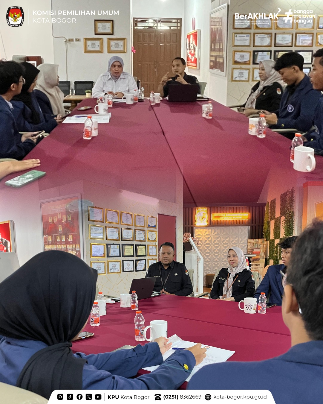 Dalam kegiatan tersebut, mahasiswa menerima arahan dan pemaparan materi dari Plh. Ketua KPU Kota Bogor, Darma Jufri, M.I.Kom yang menyampaikan berbagai informasi terkait kepemiluan. Sekretaris KPU Kota Bogor, Hangga Pramadiya, S.H., M.H., juga turut memberikan penjelasan terkait aspek kelembagaan dan administrasi KPU.