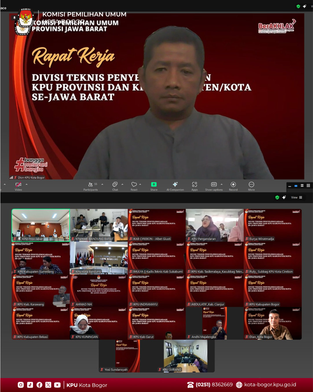 Kamis, 26 Juni 2025. KPU Kota Bogor mengikuti Rapat Kerja Divisi Teknis Penyelenggaraan bersama KPU Provinsi Jawa Barat dan seluruh KPU Kabupaten/Kota se-Jawa Barat.