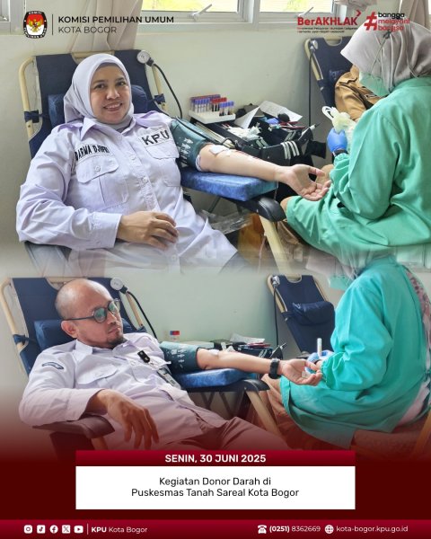 KPU Kota Bogor ikut ambil bagian dalam kegiatan Donor Darah yang diselenggarakan di Puskesmas Tanah Sareal, Kota Bogor.