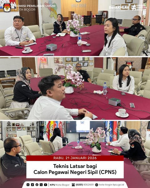 Kota Bogor - Komisi Pemilihan Umum (KPU) Provinsi Jawa Barat menyelenggarakan rapat teknis terkait Pelatihan Dasar (Latsar) bagi Calon Pegawai Negeri Sipil (CPNS) secara daring melalui aplikasi Zoom Meeting, pada Rabu, 21/01. Kegiatan ini menghadirkan Lembaga Administrasi Negara (LAN) Provinsi Jawa Barat sebagai narasumber. Rapat teknis tersebut diikuti oleh seluruh CPNS di lingkungan KPU, termasuk CPNS KPU Kota Bogor. Selain itu, kegiatan ini juga dihadiri oleh Kepala Subbagian Keuangan, Umum, dan Logistik (Kasubbag KUL) serta Kepala Subbagian Sumber Daya Manusia (Kasubbag SDM). Kegiatan rapat teknis ini bertujuan untuk memberikan pemahaman yang komprehensif mengenai pelaksanaan Latsar CPNS. Dalam kesempatan tersebut, perwakilan LAN Provinsi Jawa Barat menyampaikan materi terkait kebijakan dan teknis pelaksanaan Latsar sesuai dengan ketentuan yang berlaku. Kegiatan ini, sebagai bagian dari proses pembentukan aparatur sipil negara yang profesional, berintegritas, dan berkomitmen terhadap pelayanan publik, khususnya di lingkungan KPU. KPU Provinsi Jawa Barat menegaskan komitmennya untuk terus mendukung pengembangan kapasitas sumber daya manusia melalui koordinasi dan sinergi dengan berbagai pemangku kepentingan, termasuk Lembaga Administrasi Negara.