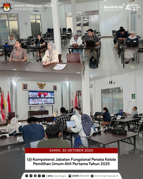 KOTA BOGOR – Komisi Pemilihan Umum (KPU) Kota Bogor melaksanakan kegiatan Uji Kompetensi Jabatan Fungsional Penata Kelola Pemilihan Umum Ahli Pertama Tahun 2025, bertempat di Aula Kantor KPU Kota Bogor, Kamis (30/10/2025).