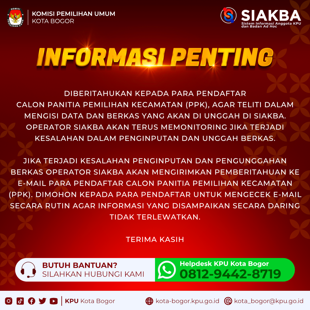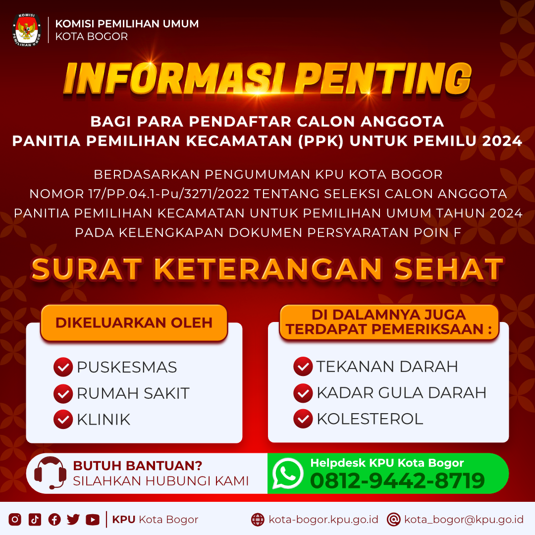 INFORMASI PENTING! TERKAIT SURAT KESEHATAN CALON PENDAFTAR PPK PEMILU 2024 Kamis, 01 Januari 1970 07:00 737 Baca Selengkapnya