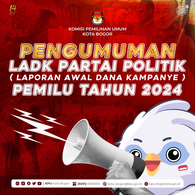 PENGUMUMAN LAPORAN AWAL DANA KAMPANYE PEMILIHAN UMUM TAHUN 2024 TINGKAT KOTA BOGOR Sabtu, 13 Januari 2024 08:00 744 Informasi Selengkapnya dapat dilihat atau diunduh DISINI Baca Selengkapnya