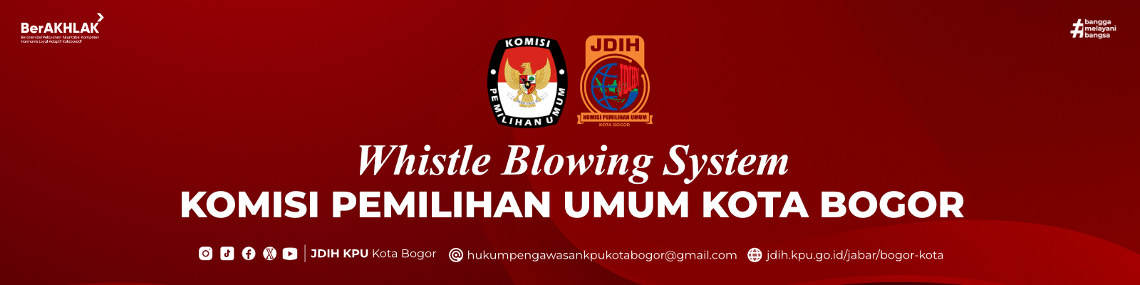 Whistle Blowing System (WBS) adalah sarana yang disediakan oleh KPU Kota Bogor bagi Anda yang memiliki informasi dan ingin melaporkan suatu perbuatan yang berindikasi pelanggaran di lingkungan KPU Kota Bogor.
